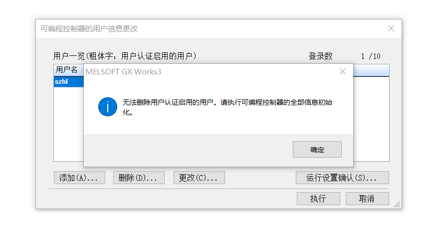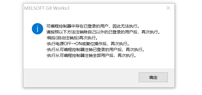 當(dāng)有其他用戶在登錄中時,無法初始化可編程控制器??芍貑PU電源,再登錄認證啟用的口令就能成功初始化