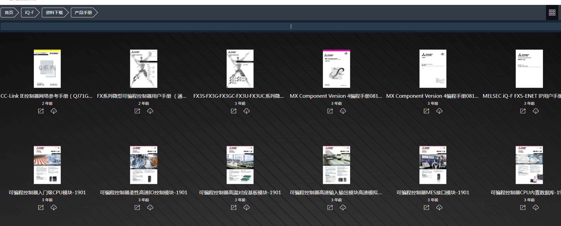 例如我要找IQ-F的PLC的資料手冊。直接點(diǎn)擊進(jìn)去。(可以左右滑動(dòng),需要找什么資料就進(jìn)去)