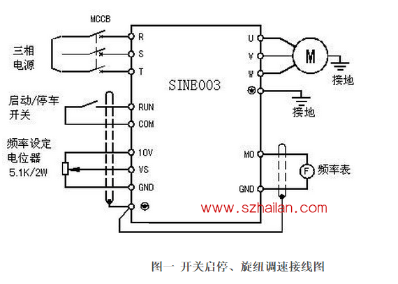 圖一 開(kāi)關(guān)啟停、旋紐調(diào)速接線圖
