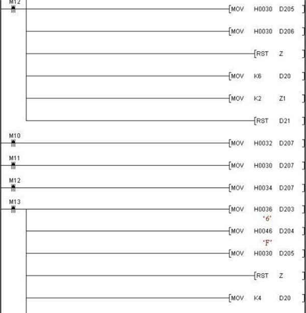 有關(guān)利用三菱變頻器協(xié)議與變頻器進(jìn)行通訊的PLC程序如下: