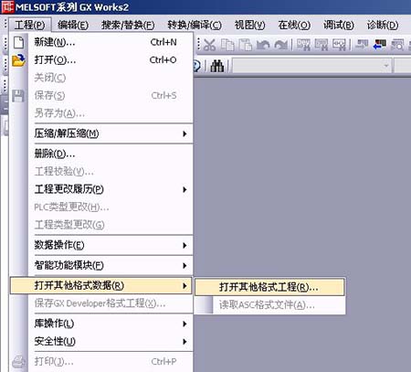 第 1 步:在 GX Works2 中,點(diǎn)工程、打開其他格式數(shù)據(jù)、打開其他格式工程;