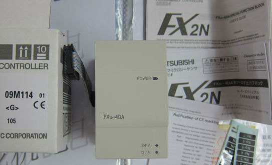 6、三菱FX2N-4DA有4個輸出通道。提供了12位高精度分辨率的數(shù)字輸入。轉(zhuǎn)換速度為2.1ms/4通道,使用的通道數(shù)變化不會改變轉(zhuǎn)換速度。輸出的形式可為電壓,也可為電流。其選擇取決于接線不同。電壓輸出時,兩個模擬輸出通道輸出信號為0~10V DC,0~5V DC;電流輸出時為4~20mA DC。分辨率為2.5mV(0~10V DC)和4uA(4~20mA)。數(shù)字到模擬的轉(zhuǎn)換特性可進(jìn)行調(diào)整。本模塊需占用8個I/O點(diǎn)。適用于FX1N、FX2N、FX2N子系列。其他的性能與FX2N-2DA相似。