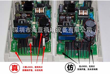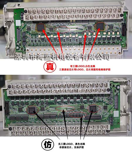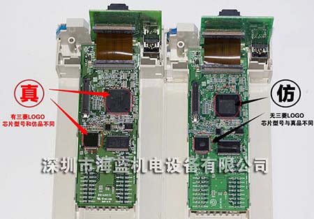 3、內(nèi)部,真品每塊電路板上都有三菱Logo。仿品電路板上沒有三菱Logo。