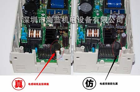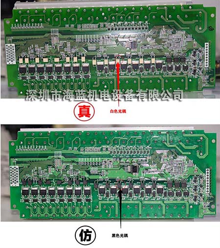 IO板上。原裝主控芯為三菱的芯片,其它如光耦,晶體管,驅(qū)動芯片均為日原廠原裝器件,而仿貨均為國產(chǎn)器件,外觀及其顏色很容易分辨出來