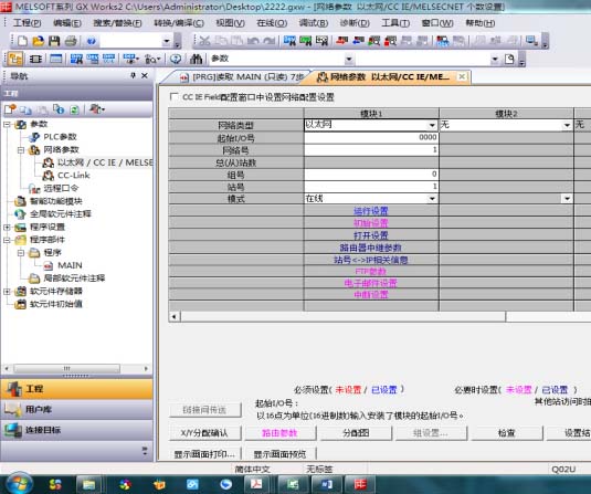 因為把三菱PLC以太網(wǎng)模塊QJ71E71-100放在I/O0上面,所以起始I/O號為0000,網(wǎng)絡號和GOT要統(tǒng)一,站號不可重復。