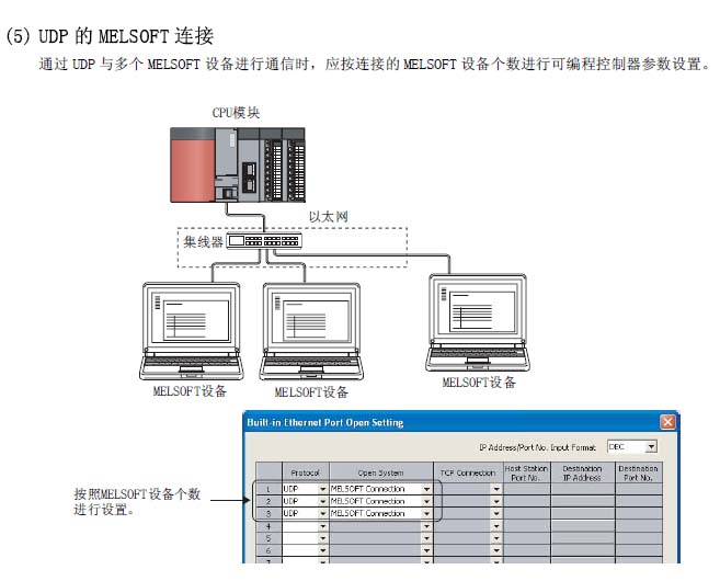 用到幾個GOT,就選設置幾個UDP。三菱QnUCPU用戶手冊(內置以太網(wǎng)端口通訊篇)說明如下