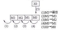 SFTRP M0 M20 K16 K4 意思是:當(dāng)條件成立時(shí),將M3M2M1M0右移到M35M34M33M32M31M30M29M28M27M26M25M24M23M22M21M20中去,每次移4位,低位溢出。
