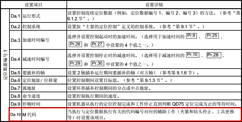 二:在定位數(shù)據(jù)的設(shè)置項目Da.10 “M 代碼”中設(shè)置M代碼編號(1-65535可以設(shè)置)