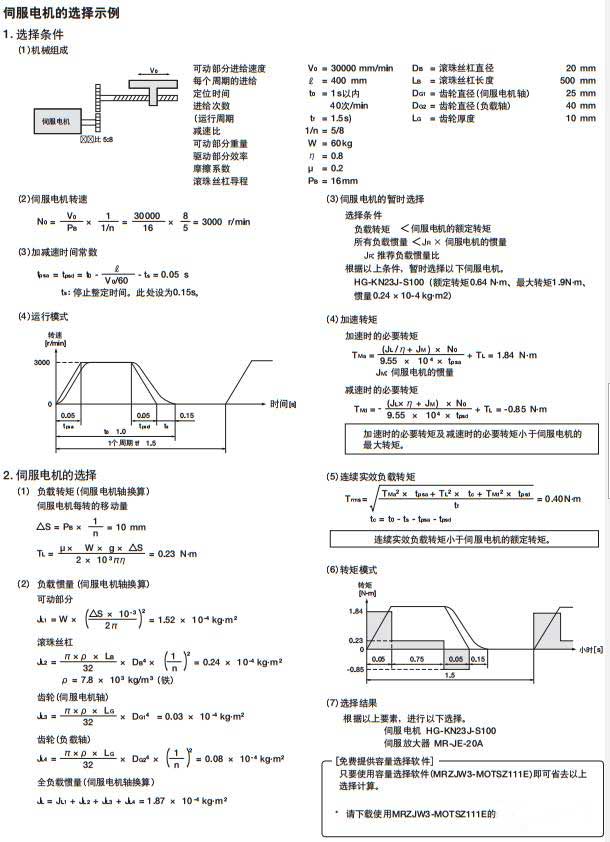 比如下圖是三菱伺服電機(jī)選擇示例,滿滿的一頁(yè)都是計(jì)算...