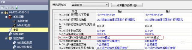 接下來(lái)將通過(guò)一個(gè)簡(jiǎn)單編程實(shí)例來(lái)展示一下M代碼的使用方法。 首先需要說(shuō)明的是,在簡(jiǎn)易運(yùn)動(dòng)控制模塊的參數(shù)里,可以看到一個(gè)Pr.18的參數(shù)與M代碼相關(guān)。這個(gè)參數(shù)是“M代碼ON信號(hào)輸出時(shí)機(jī)”,并可以看到有“WITH模式”及“AFTER模式”兩個(gè)選項(xiàng)。