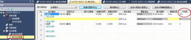 其次,在定位數(shù)據(jù)的最后一列,就是設(shè)置M代碼的地方,每一個(gè)定位數(shù)據(jù)都可以設(shè)置一個(gè)M代碼,M代碼可以在1-65535中任意設(shè)置一個(gè)整數(shù)(設(shè)為0則表示不使用),同一軸的定位數(shù)據(jù)里,M代碼不要設(shè)為一樣,不同軸之間則無(wú)所謂。比如,在本例中,軸1定位數(shù)據(jù)1的M代碼設(shè)置為100,定位數(shù)據(jù)2的M代碼設(shè)置為102。 為了在程序中不混淆,軸2定位數(shù)據(jù)1的M代碼設(shè)置為101。