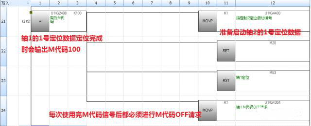 軸1定位完成---M代碼輸出---軸2定位啟動(dòng)