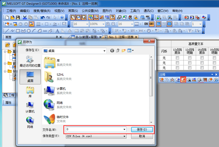 注釋導(dǎo)出,可將已編輯好的注釋導(dǎo)出為注釋文件(*.CSV)。