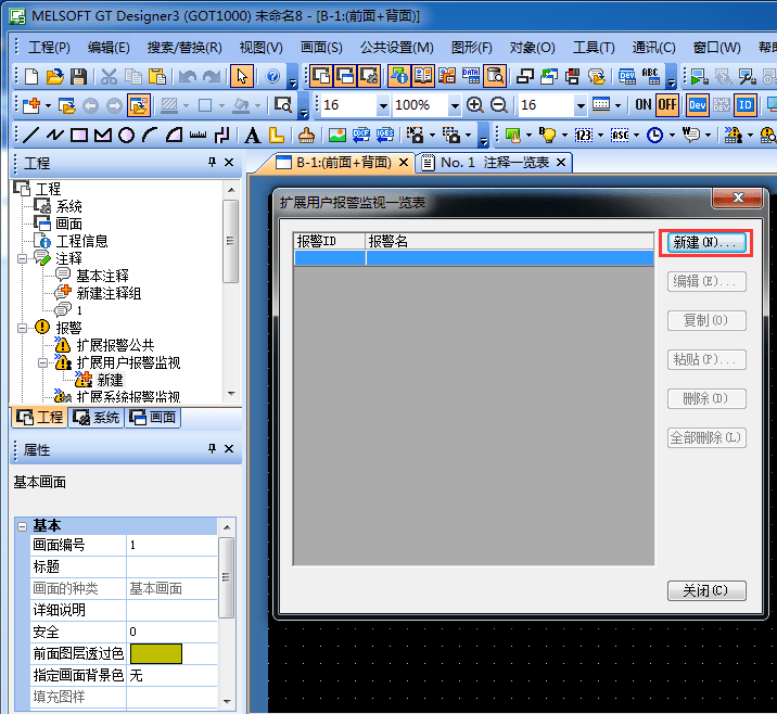 2.3.2 新建一個擴展用戶報警監(jiān)視表,單擊[新建]