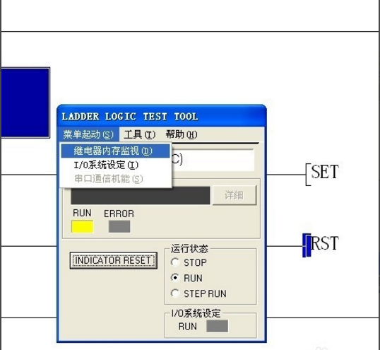 六、點(diǎn)擊測試對話框的“菜單啟動(dòng)”—繼電器內(nèi)存監(jiān)視。