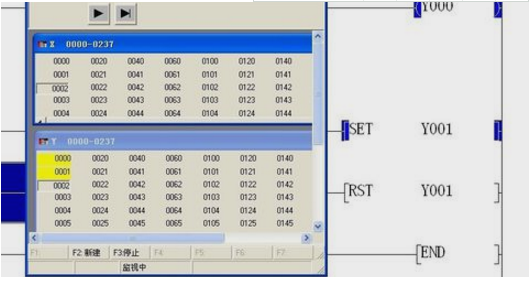 七、在監(jiān)控對話框中調(diào)出X和Y監(jiān)控頁面,點(diǎn)擊軟元件—位軟元件窗口。這時(shí)可以點(diǎn)擊X0和X2,雙擊兩次X0相當(dāng)于按鈕功能,這時(shí)發(fā)現(xiàn)Y0已經(jīng)保持輸出狀態(tài),再次按X1解除。按下X2會(huì)使Y1保持輸出,按下X3才能復(fù)位Y1。