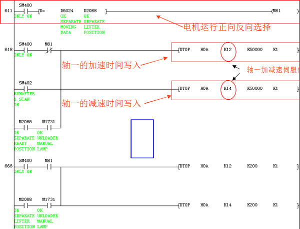 10.伺服電機加速時間和減速時間的程序設(shè)定方法: